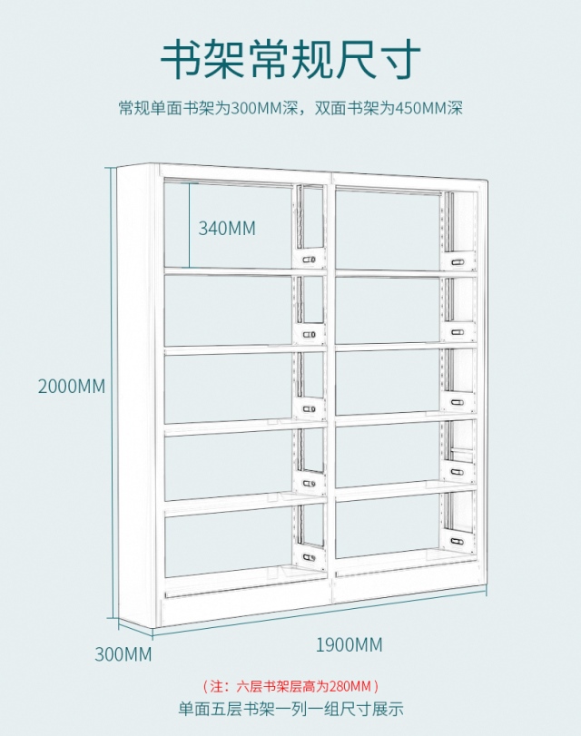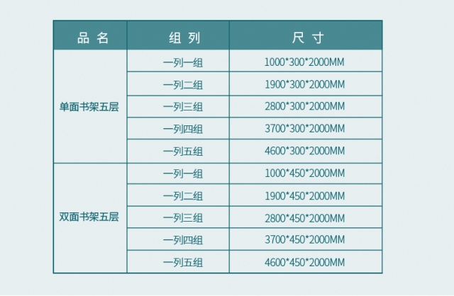 單面一列一組五層書架